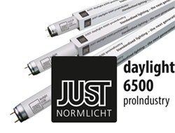 Weilheim a.d. Teck: JUST Normlicht is presenting the new JUST daylight 6500 proIndustry D65 fluorescent lamp. It is the heart of all D65 devices from JUST Normlicht and has even better spectral properties than its predecessor. As a result, controlled, reproducible lighting conditions are possible for standard-compliant color matching of a wide variety of materials in accordance with international standards.