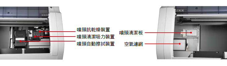 SC-F2000 內建自動清潔系統,保護噴頭不易耗損,同時提供了穩定的印刷品質,容易維護並節省人力與成本。