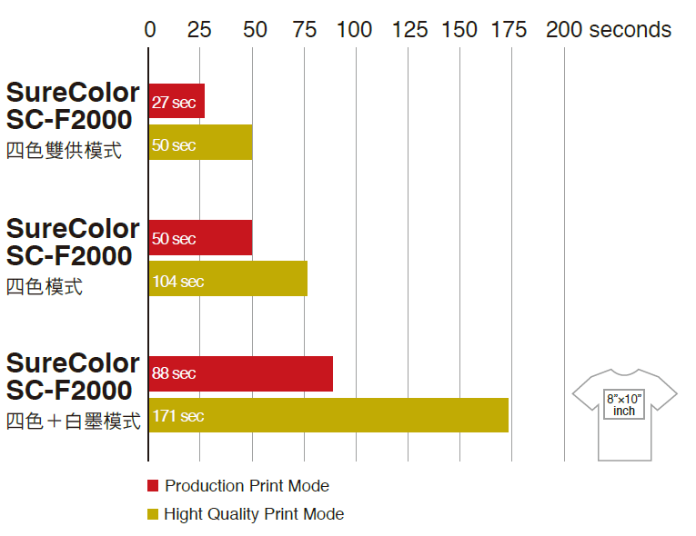 T-Shirt 印製速度參考表 (印刷範圍8x10英吋,約A4大小)