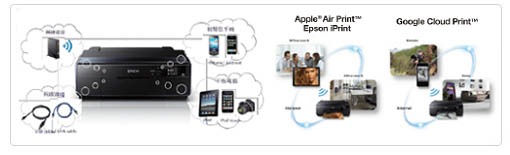 SC-P607 採用最新 Wi-Fi direct 技術、支援智慧型手機、平板電腦無線點對點連接,無須透過 Notebook 或 PC 驅動,即可直接列印照片及文件檔案;同時也支援 iOS AirPrint 以及 Google 雲端列印功能,讓您在戶外也能立即連線至室內的 SC-P607 進行列印,大幅提升了印刷的便利性。