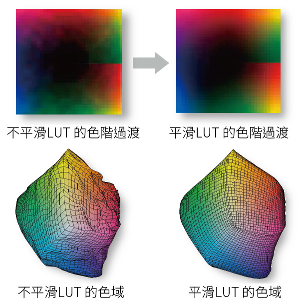 在許多類型照片中,如藝術照和戶外風景照,各種顏色相互混合。這些色階的平滑過渡是決定圖像品質的一個重要因素。LUT 技術提供更平滑的層次過渡,使各種顏色之間的色階精細化。