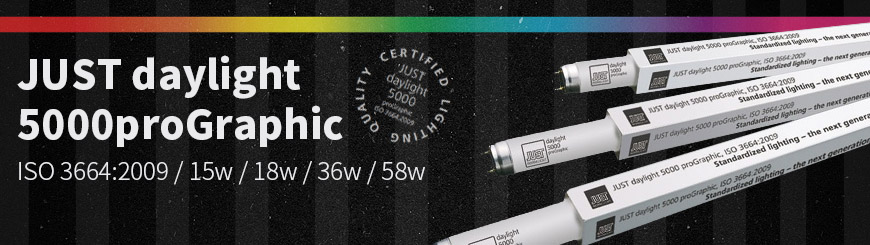 Daylight 5000 proGraphic, exclusively designed for JUST, are the only fluorescent tubes worldwide with exceptional standardized lighting quality.