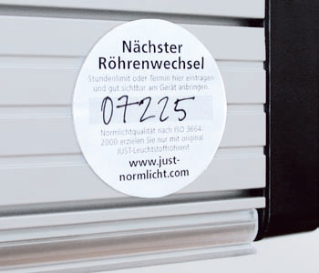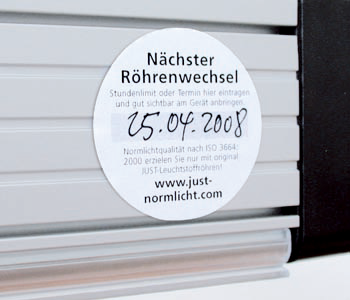 After 2500 hours of service, fluorescent tubes diminish their color temperature. In order to provide consistently accurate and reliable viewing conditions, JUST Normlicht requires relamping every 2500 hours.For viewing devices with no hour counter