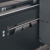 透過桌台驅動時固定 Y bar,可減少印刷時的搖晃情況。此外,桌台驅動時藉著使用左右配置的2根滾珠螺桿,可實現高精準度的印刷。不僅如此,4根的腳架使用各自安裝的馬達,可保持桌台升降時桌台的水平,是高精度印刷的強力後盾。