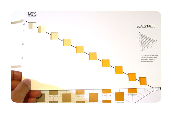 NCS Atlas 色票本透過各種固定編號的色票展示顏色之間的關係,並組成各個色彩區域。色票本中包含 NCS 全部 1950 個顏色的亮度資訊,可以輕鬆根據亮度的區別來選擇顏色,生動地說明了色彩與亮度之間的關係。