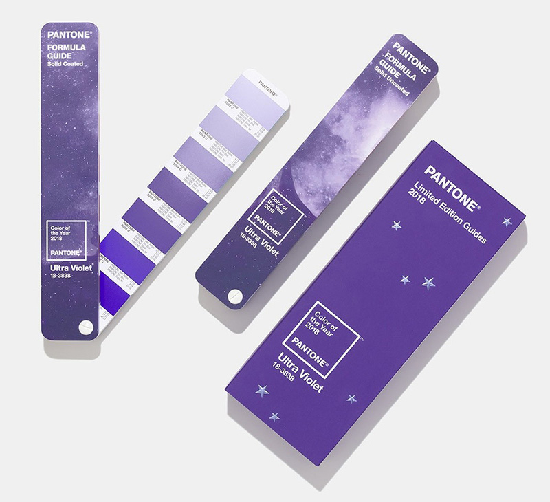 供設計靈感、指定色彩及印刷準確性之用的全球熱銷指南,為慶祝彩通 2018 年度代表色,現在提供限量版。這套特別版本數量有限,全球僅提供 3,500 套,特色是有著漂亮柔軟、望向天際的封面,展現 PANTONE 18-3838 Ultra Violet 紫外光色的宇宙。您會在內容發現一整頁的紫外光色彩資訊,說明為什麼選它為年度代表色,以及完整的歷年年度代表色清單。這套光面銅版紙及膠板紙指南置於一個兼具裝飾與保護作用的盒子裡,讓您想要整年都陳列在書桌上!