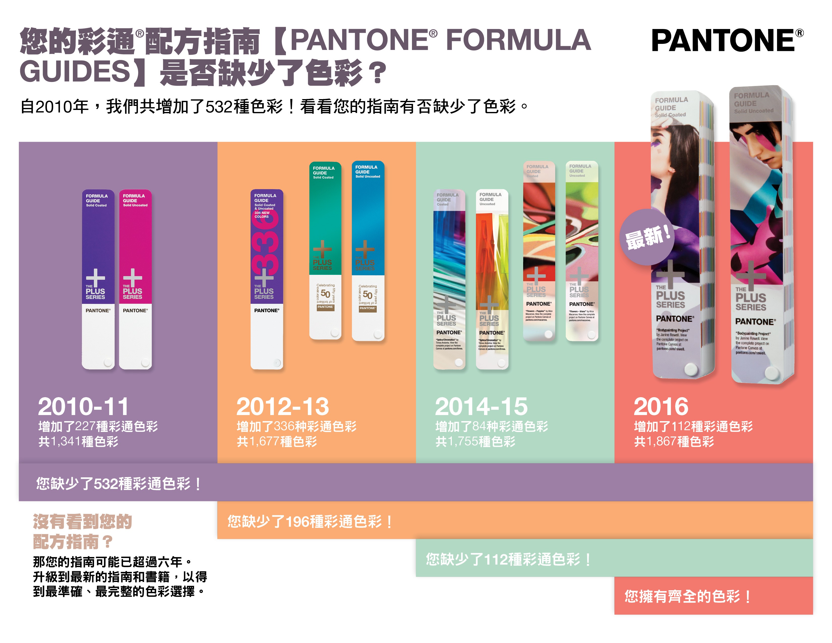 如果您已經有好幾年沒有更新您的PANTONE指南與色票手册,您的色彩就不再充分符合市場需求,也不再精準可靠,意味著您可能錯失良機!