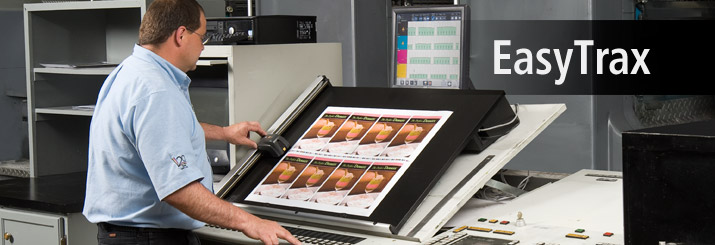 - EasyTrax 可在印張的任何位置執行掃描測量或專色測量,這使得 EasyTrax 成為了在小幅面彩色印刷中或四色基本原色色彩環境下實現無誤色彩控制的完美解決方案。